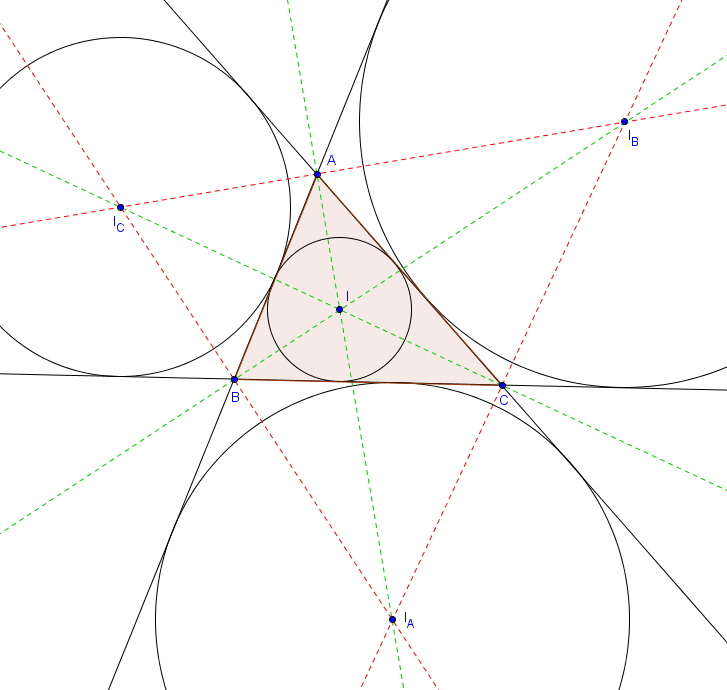 Dans un triangle, l'intersection des bissectrices intérieures des trois angles est assez connue, mais on peut en fait également considérer l'intersection de deux bissectrices extérieures avec la dernière bissectrice intérieure.